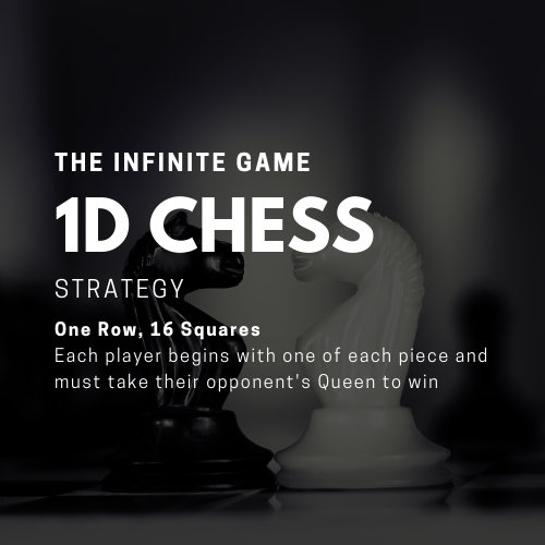 06 1D Chess July 06 2021 by dp digital Each player starts with one of each piece and must capture their opponent's Queen to win; the chessboard is a single row of 16 squares Click for Chess Board Read More